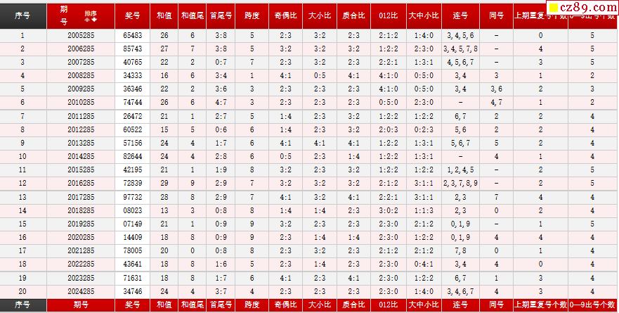 第285期体彩P5历史同期对比